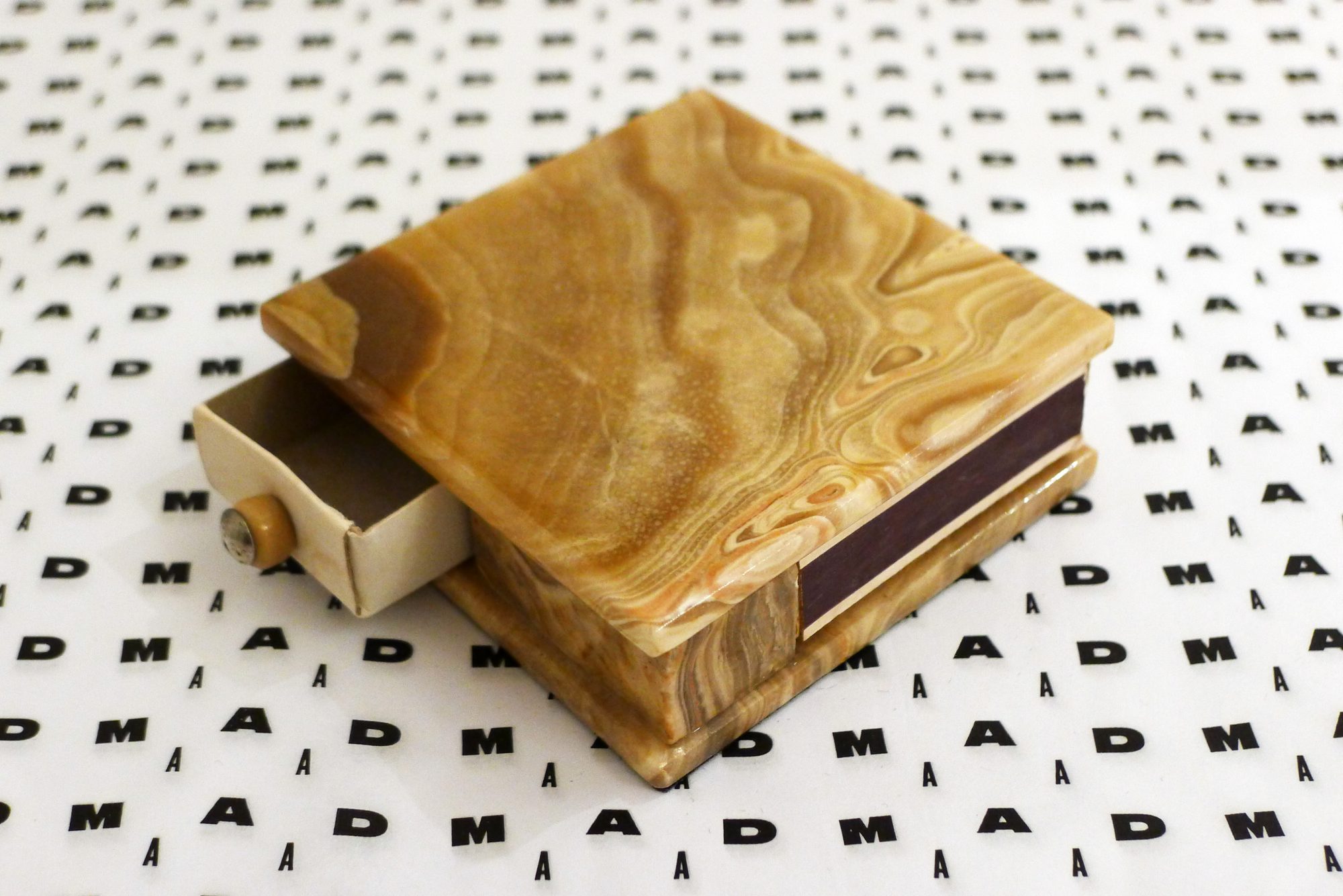 Boite à allumettes, avec 2 tiroirs & 2 grattoirs ; en onyx ; mi XXème