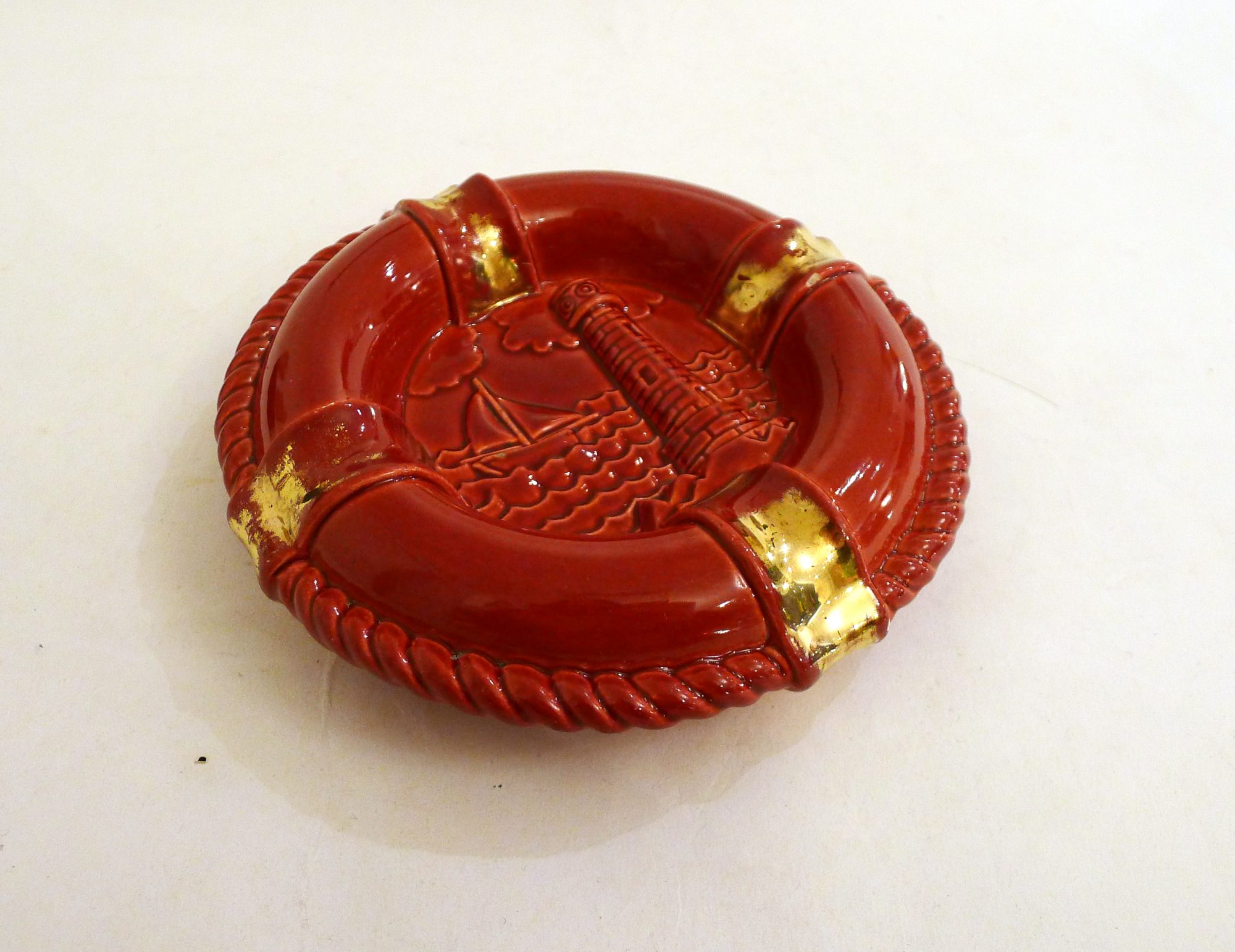 Cendrier Bouée & décor marin en relief, par Verceram France ; en faïence ; 1950′ / 1960′