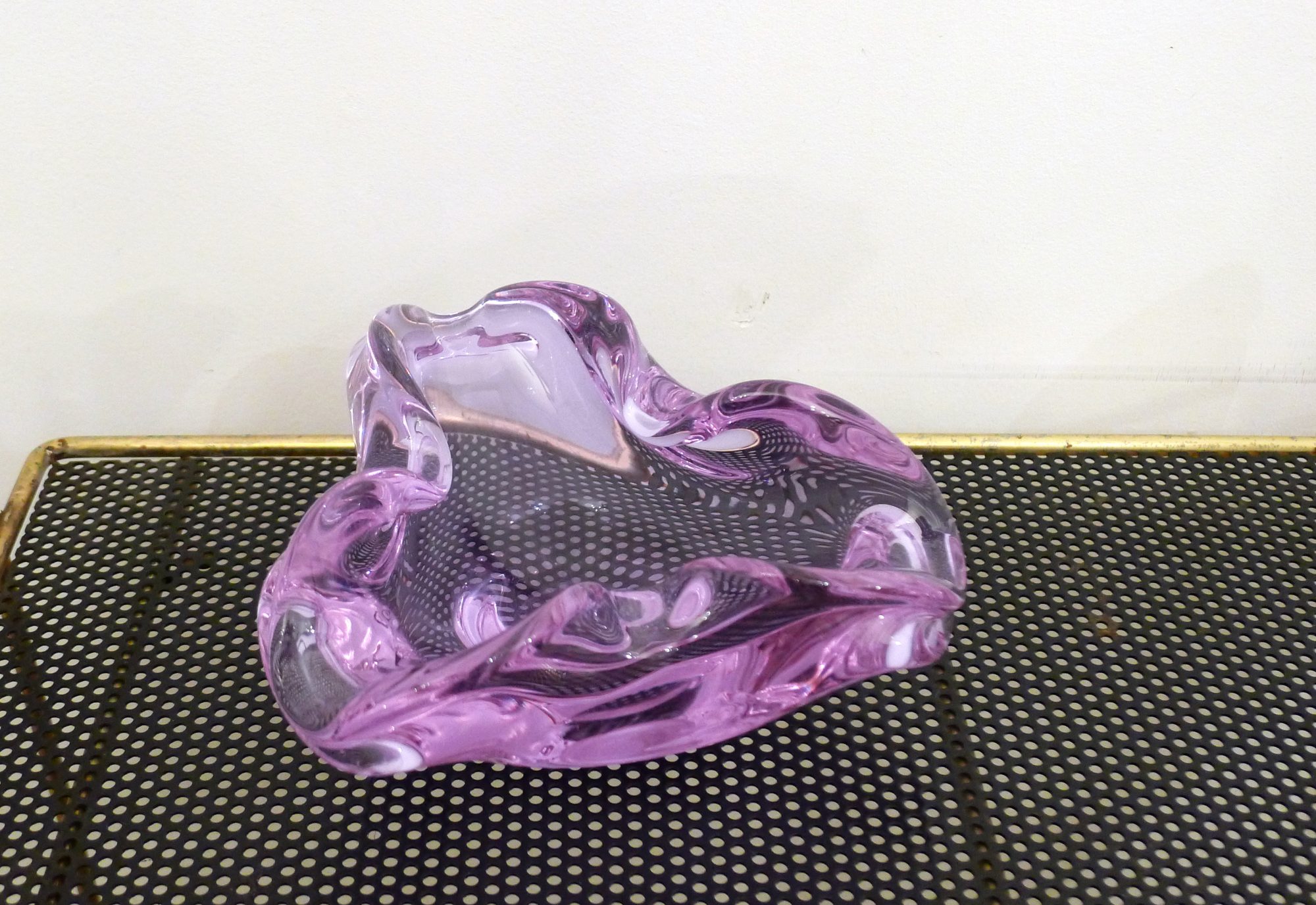 Cendrier forme fleur trilobée ; en verre alexandrite (qui change de couleur selon la lumière) ; 1960′ / 1970′
