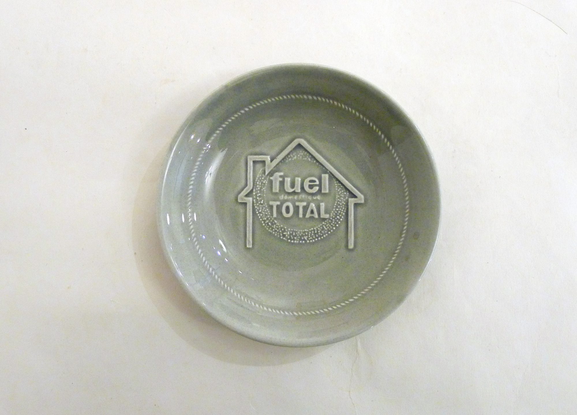 Petite coupelle publicitaire Fuel Total, par Lunéville Keller & Guérin ; en faïence ; 1950′ / 1960′
