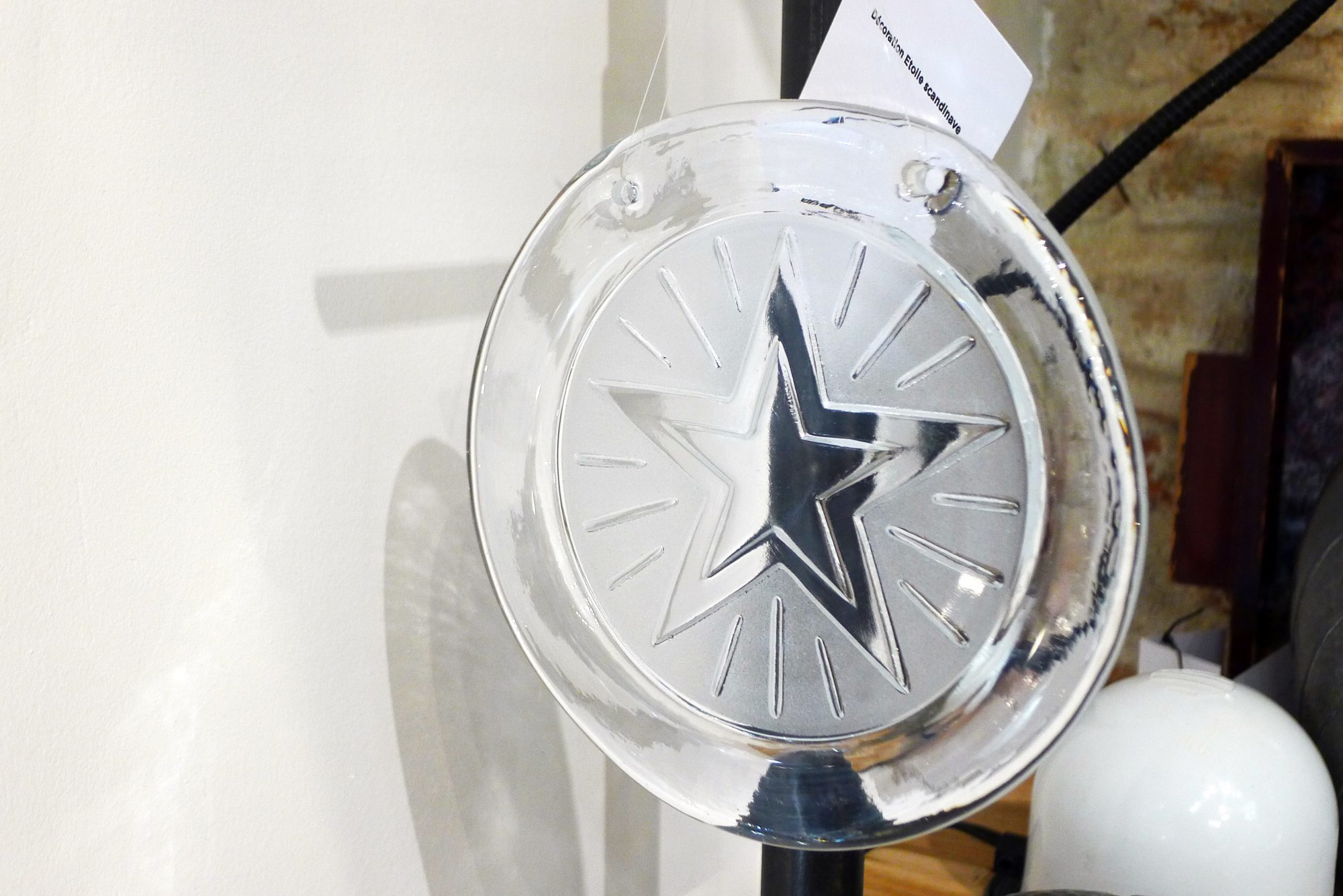 Décoration scandinave à suspendre (Noël), étoile rayonnante ; en verre incolore