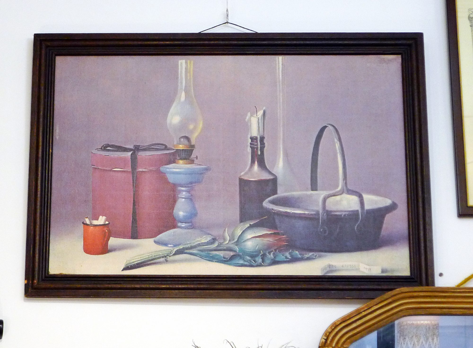 Grande repro d’un tableau Nature morte de Proferio Grossi, Italie ; toile imprimée, bois ; 1970′