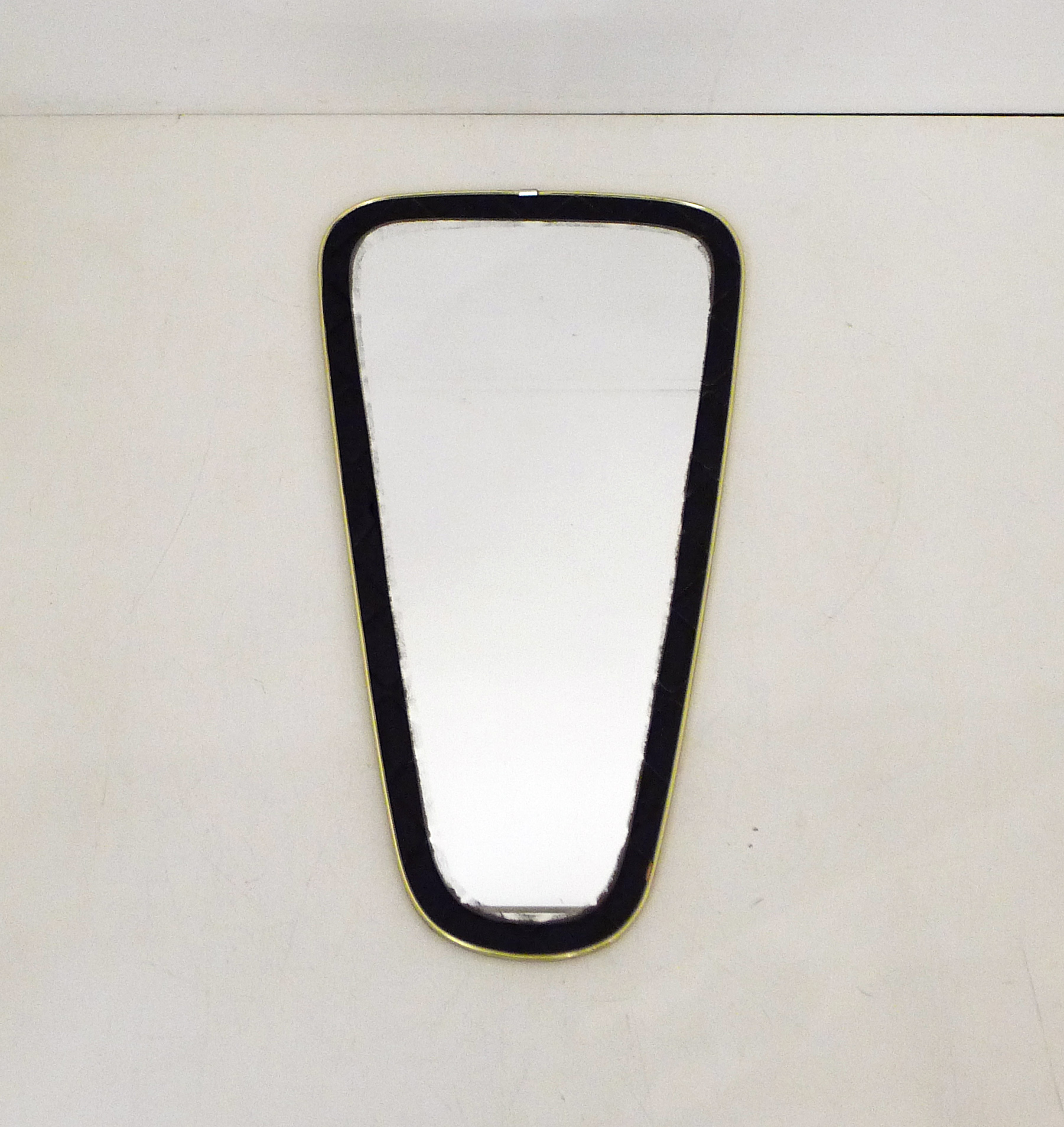 Miroir mid-century cadre matelassé ; en métal doré, simili-cuir, bois & miroir ; 1950′ / 1960′